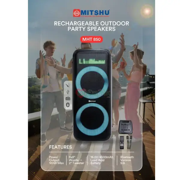 RECHARGEABLE SPEAKERS 120W - 8+8''